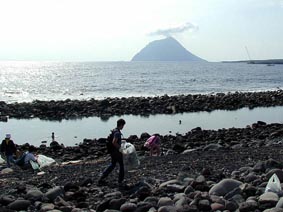 前日のザーザー降りとは打って変わって初夏のようないいお天気でした。帽子をかぶった上にサンブロックを塗らないときついほどの日差しの中で、海岸のゴミ拾いをしました。 今回の特徴は、ペットボトルや空き缶がほとんどなくて、細かいプラスチックの破片が多かったことです。毎回それぞれ違うのがおもしろいところです。 ビデオ上映をしたビジターセンターでは15人くらいの参加者だったのに、あとからぽつりぽつり増え、打ち上げから参加する人も‥‥。結局は30人くらいになり、八丈太鼓も入ってにぎやかに打ち上げました。 八丈島の部屋 アマナクニ・ホームページ |