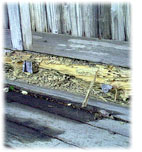 雨戸を乗せる梁材がシロアリに 食われ、これじゃあ雨戸が閉め られなくなる! 台風が来たら どうしよう! ‥‥つい最近、なんとか直しま した。でも雨漏りはどうしよう? 実は、去年の時点では家を建て ようと思っていた土地が、規制 があって家を建てられないこと になり、そのままズルズルと同 じ古い借家に住んでいます。 (98.12段階で) |