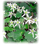 「大」という字に似てるから名 前がつけられたイズノシマダイ モンジソウ。あまり日当たりの よくない崖などに群生している。 |