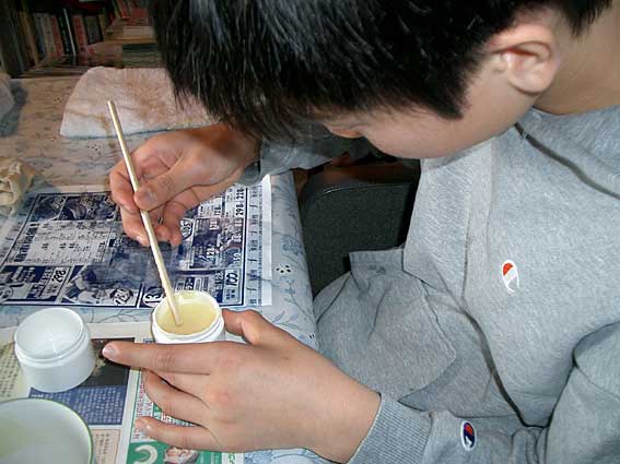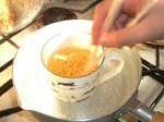 そして精油を加え、均等にまざるように割り箸でかきまぜます。しばらくすると固まってきます。