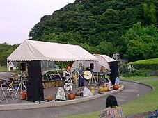21日は夕方から下田の敷根公園という山の中のひろびろとした公園で前夜祭のコンサートがありました。事務局に前もって電話したら下田駅から1分だと言うのでてくてく歩いたんですが、車で行っても何分もかかりそうな上り坂で汗をかくはめに‥‥。でも着いてみたら山の中の広々とした気持ちいい場所で、見覚えのある顔も多く、すっかりくつろぎました。ビールとヘンプパンもおいしかった! 心配していたお天気も良く、暑すぎずもしないという絶好の行楽日和。出演したのは、楽器がまちまちだけれどノリのいい地元のセッションバンドやテクノ風バンド、また山根真衣を久しぶりに聞きました(ライブでは初めて)が改めてファンになりました。 |
