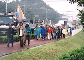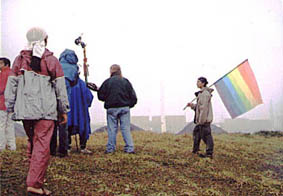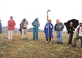 小雨の中、この現実の内に、未来への希望をと、無言のサークルで深々、祈る。