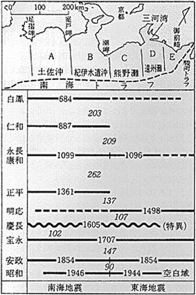 100〜150年おきにくりかえす東海地震