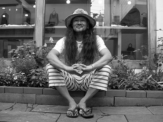 で、小田原の方にある高校のデザイン科に通ったあと東京の服飾の学校へ、半年で赤坂にできたGRASS、当時尖端だったいわゆるヒッピー・ファッションのショップでスタッフとして働かないかって誘われて、そこでイカレタ服を作っていました。その後友人3人と青山で3 1/3(サンカサンブンノイチ)っていう一点物やオーダーの店を始めたんです。フラワー・チルドレン〜サイケデリック〜ロンドン・ポップっていうきらびやかな時代だよね。ちょうどその頃からマンション・メーカー、今でいえばインディーな服屋がどんどんできてきて、で、ミュージック・シーンはそのあとパンク・ロックの登場。僕は渋谷のファイヤー・ストリートで仲間と一緒にHELLOっていう店を始めた。ず〜っと服関係の仕事、っていうよりぜんぜん仕事っていう感覚じゃなかったけどね。で、90年代頃から東京がおもしろくなくなっていって、今のパートナーが八戸で服屋やっていたんで、そこ手伝おうかなって、18年くらい前に八戸に移住しました。