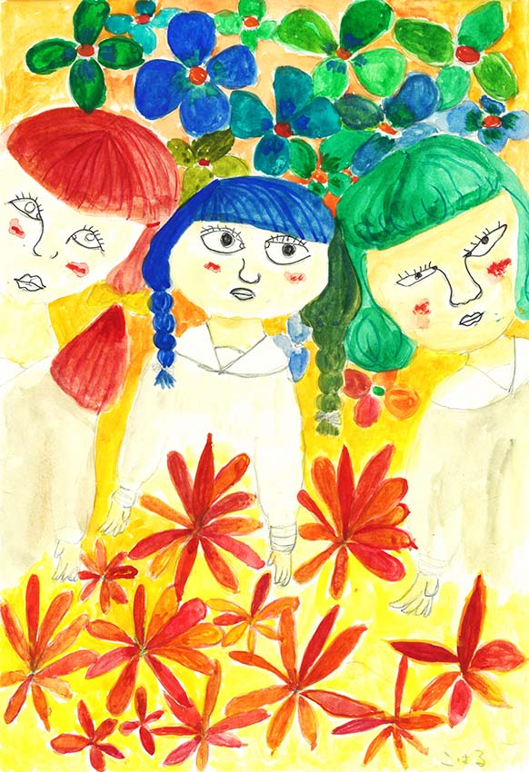 絵:「へいわの花を咲かせた女の子たち」 by 小春日和