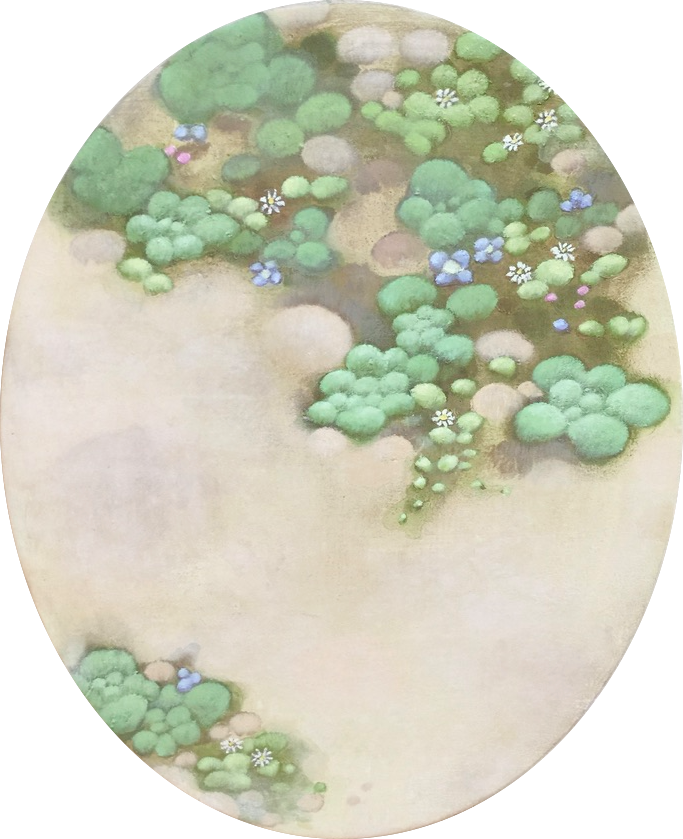 あしもとに広がる草むら、小さな花々はまるで銀河のよう 山の暮らしをする中、大地と心を通わせていくと どんなものもつながっている どこへでもつながっていけることを感じる 山にいながらも、そこは海になったり、空になったりする 時間や空間は飛び越えていける ゆれる葉は海の泡 海の泡は砂のながれ ながれる砂は星のまたたき とけあう あしもとのそら