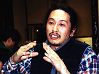 最初,「虹の祭り」は,「ごめんな祭」をしようよ…で始まったんですけども。(前号参照) あくまでこれ,僕一人やという言い方をされると非常に語弊がある。あのー,たまたまコロッと言うただけの話で,そっから「みんなそう思ってたんちゃうか?」っていう。「一斉に,地球に“ごめんな祭”をして21世紀を迎えたいものだねぇ」。このエピソードが,意外に共感を誘う。春,アイディアは─99年を「謝罪」2000年を「祝福」2001年を「旅立ち」という各テーマで,この際3年間通して祭っちゃおう―という計画になった。人類史100年と1000年が同時に飽和してあらたまる。くくりの今,と言う自覚がある。 岡野さんは過去に,天河という音楽の神を祭っている神社で転んで左手首を挫き,以来楽器を持てなくなった時期がある。これをきっかけに,「風の楽団」という技術的にも優れたバンドができてゆき,それとは別に屋久島等の聖地で何百個〜千の風鈴を森の中にしかけて,その山の霊気を音に写し取るという試みをCDにする…ソロ活動が始まる。パートナーでダンサーである宏子さんと二人で関西圏で「風の祭り」というお祭りをしていくうちに,ある時オーガナイズをしていた人がチラシに「岡野弘幹と天空オーケストラ」と書いたのだそうだ。そのうち「天空」「天空」と呼ばれる様になった。シタール,ネイティヴアメリカン・パイプ,ブズーキ,ディジュリドゥ,フィドル,タブラ−,ジャンベ等とギター&歌&ダンスで,民族的かつグローバル。5年間出演して来たイギリス・グラストンバリ−参加の他,国内で年間40〜60回のライブをしている。「今年はもう,グラストンバリ−行けないな…。いつもは6月には行ってる。もう今年は外国のお祭りなんて行ってられない」。そう,8月には奈良・東大寺の「ごめんな祭」が熱くなっている。 5月の22〜23日。良く晴れた週末に神奈川県「子供の国 アースデイ・虹のギャザリング」は行なわれた。子供達のワークショップやティピテント村のソーラーコンサート,映画,出店で賑わう広大な森の中の自然公園に2日間七色の旗ははためいた。神戸の震災から鎌倉,「白船」と共にアメリカを経て既に3000人の「祈りのメッセージ」をつないで来た女性が,ここでも木立にその短冊を結び続けていた。その木々に「風鈴」の音がすばらしい。ここで涼み,昼寝をする家族のくつろぎ。岡野さんの子供達2人もすっかり溶け込んで遊んでいた。「年末からものすごいスピードでものごとが進んでいるんで,最近家の中のことを忘れてた。祭壇の世話とか,自分のまつりごとをしたら,そしたら企画の方も急に決まったりする,わからへんのやけど…」と宏子さん。きっとそういう営みこそが自然に日々を祭りに高めてゆくのだろう。幼い頃から関西圏出雲大社で浦安の舞いをならい,日本舞踊,モダンダンスを経て今,自在に気の流れのままを踊る。 さて,虹の祭りが形をなしながらこうして始まる中,先日の選挙戦でトップ当選を果たしたメンバーが居る。 '95年1月阪神大震災後,いち早く駆け付けそれまでの仕事を投げ打って「元気村」の副村長としてヴォランティアを続けたスターンこと草島進一さんが,アースデイに姿を現わした。 '96年の日本海重油災害事故の際,インターネットで全国に最新ニュースを流しながらボランティアのネットワーキングに尽くした人だ。今度の市議選は締切り直前に「故郷月山のダムを止めなければ」と山形県鶴岡市で立候補を決意。予算約30万,カヌーを漕ぎ,自転車で回り「月山の水を守ろう!」という熱意が人々の支持を得た。1300票で当選ラインを3000票近く勝ち取ったのだ。そして,本当の戦いが始まる。この夏もう9割方できているダム建設による,飲料水の地下水からダム水への切り替えの中止を祈り,8/15の御盆に霊舞(レイブ)をしたい,できたら月山精霊祭りを…。彼は必死の思いだ。神戸のボランティア中,音楽の輪で良く顔を合わせて友だちになった岡野さんは彼を「ほんまのレインボウ・ウォリアーズやと思う」と言う。選挙戦最後の2日間を共にライブの様に歌い太鼓やギターで応援して,何度も感動の涙を流したという。そして,家族とNGOの仲間3人,電話とファックスだけでトップ当選を果たした時に「ほんまのことを言うてたら大丈夫なんや」と確信する。草島さんは「市議日記コーナー」を持つホームページ<Water Watch Network>*で,水を守る事を通して地球の声を聴き,「よっしゃ〜!」と議会で発言して行く毎日を報告している。 お茶の水「グローバル・エコー」(23日夜)。岡野さんはひとりギターで弾き語りをした。反戦ソング,ボブ・ディランの「風に吹かれて」。〜♪その答えは,君の中さ,君が知ってるだけさ〜と。泣きたくなった。今の今,戦争をしている人類。神戸の震災をも忘れてはいけない。危機をジャンプの機会として開花した魂の叫びだと思った。