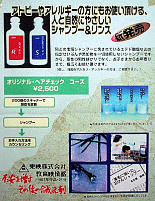 ★今も昔もカツラや育毛剤のCMが無くならないように、髪の毛のことで悩む人は相変わらず多い。しかし、ふだんのシャンプーを変えるだけでかなり違ってくるのを知ってる人は少ないようだ。髪と地球の健康にとって、何が本当にいいのかを長年追求してきた名古屋静枝さんのお店を訪ね、お話をうかがった。 〈浜田〉
