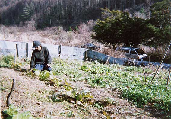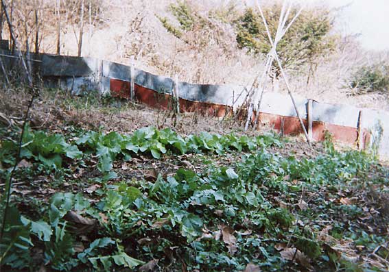 自然農。枯葉、雑草と共に育つ白菜、大根
