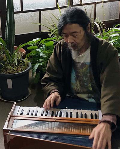 毎度、御無沙汰してすいません。1年ぶり以上の便りとなりますね。昨年の冬至(2022年12月22日22時22分)に瀬戸内の小豆島の星が城という一番高い山頂で世界の聖地へ向けて祈りのセレモニーをしました。 実は僕の住んでいるつるぎ山系の津志嶽と星が城は特別なエネルギーラインの関係にあることが数年前から解っていましたけど、例によってオートマジックが働き、自然に行く流れになるまでは行くことはなかったのですが、最近ずっと神事やライブの流れを共有している4410のヒロ君から、冬至に星が城へ祈りに行きませんかと誘われて、初めて小豆島へ渡ることとなり、そこから大きく流れが変わることになりました。 津志嶽を立位置にとると、星が城はちょうど北極星の下に位置します。北極星は動かないので、一年中その位置にありますが、冬至になりますと他の星座も見事に地上の山や島々と重なるという妙があります。詳しいことはまだ公開できないですが、ちなみに津志嶽と星が城を結ぶラインのど真ん中に空海がお遍路の八十八番(最終)に設定した大窪寺があります。御神体は矢筈(ヤハズ)山で、津志嶽の奥にも矢筈山があり、ラインとシンクロした暗号ネーミングのようにもなっています。空海はこのラインの重要性を解っていて、中央にバランスをとる型で設定したのでしょうか。 さて、物語はここから始まります。小豆島在住のチャクララ・バンドというとてもすてきな人達と共に祈るということになり、彼らはキールタンというインドの歌によるヨガ(バクティヨガ)をする人ということで、キールタンを知らなかった僕はユーチューブで調べたら、インドのキールタンが出てきて、ハルモニウムというインドの鍵盤楽器を弾きながら、リードシンガーが一節歌うと、輪を囲んだ皆が復唱するという、コール&レスポンスの型で神への祈り唄を深め高め、サマディーを目指すというものでした。それは、とても僕の唄の本質と似ているなと感じ、もしかしたらこれは自分の得意な分野ではないかと思ったとたんに、星々城から世界の聖地へ向けての祈り歌が生まれ、次々とキールタンになりそうな歌が生まれ始めました。1週間で10曲という自分でも初めてのペースで、3日目には1日で4曲という信じられないペースでやってくるので、神様〜!これはどうしたってハルモニウムが必要ですと祈ったら、翌日、手元にハルモニウムがやってくるというオートマジックが起こり、すっかりミラクルな波に乗ってしまいました。