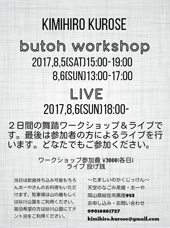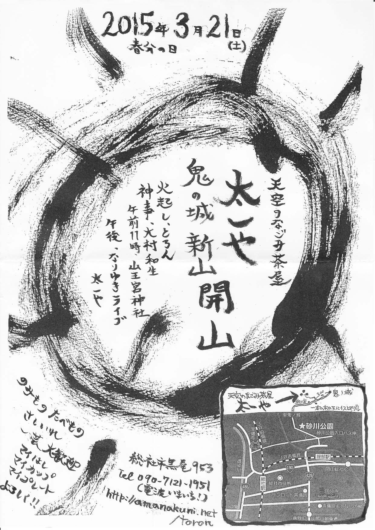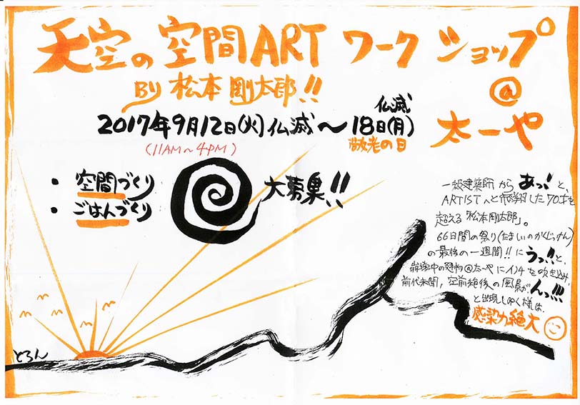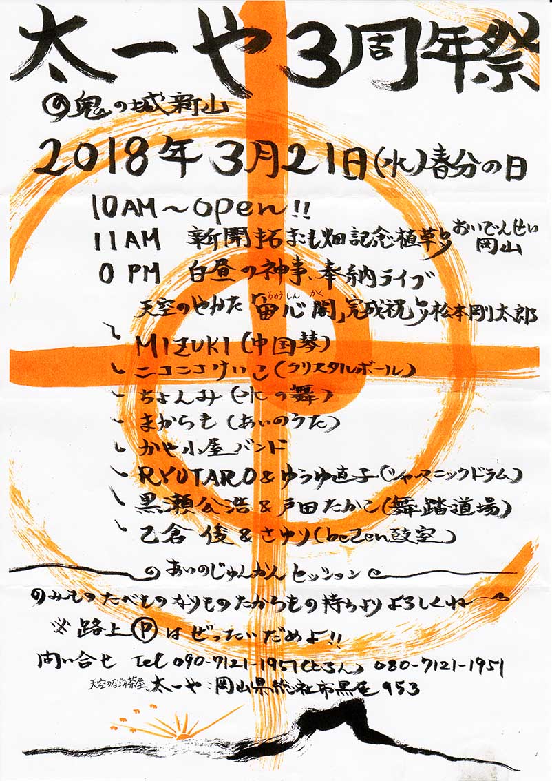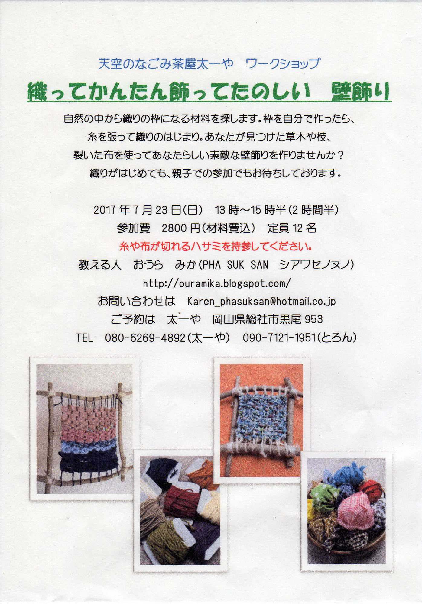 今回は、天空のなごみ茶屋『太一や』さんにて、ワークショップ(11時から二時間程度)をします。