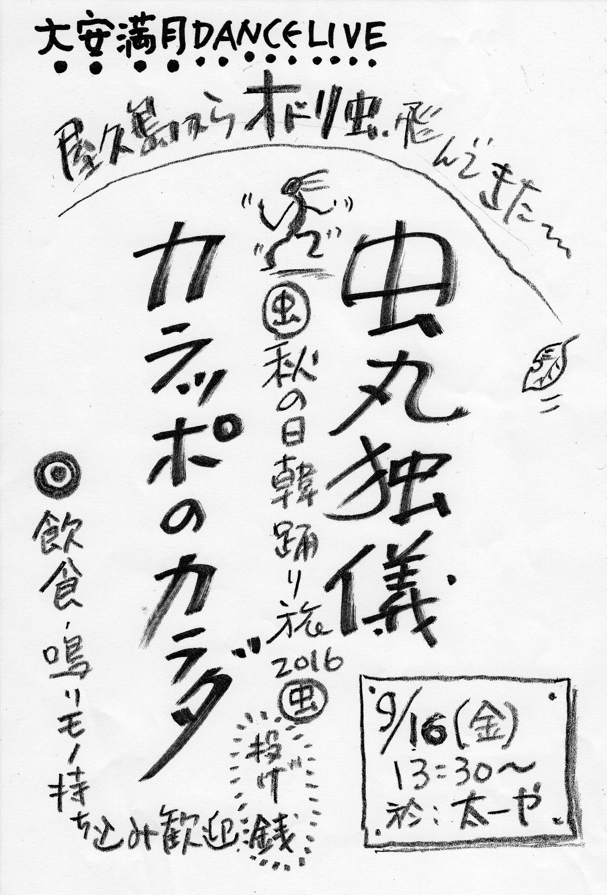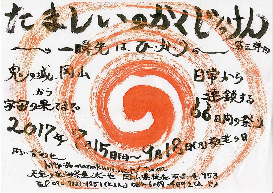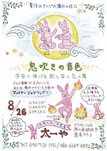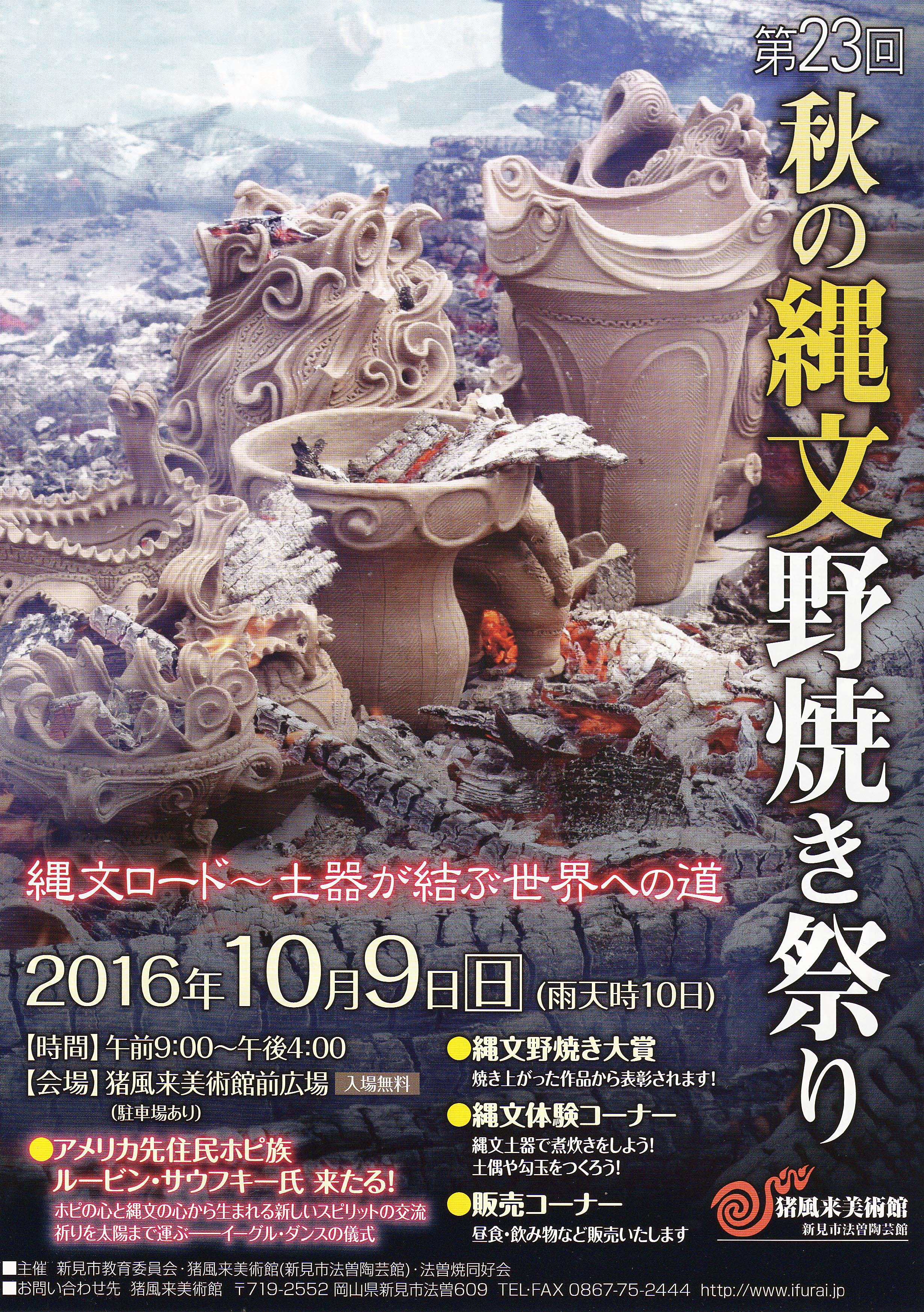 ★火祭の最終イヴの日、10月11日(日)は、猪風来(いふうらい)美術館の廃校の校庭で縄文野焼き祝典祭りがあり、そこで、火祭即興のクライマックスが起きれば!!と強く妄想してます。チラシ表/裏面