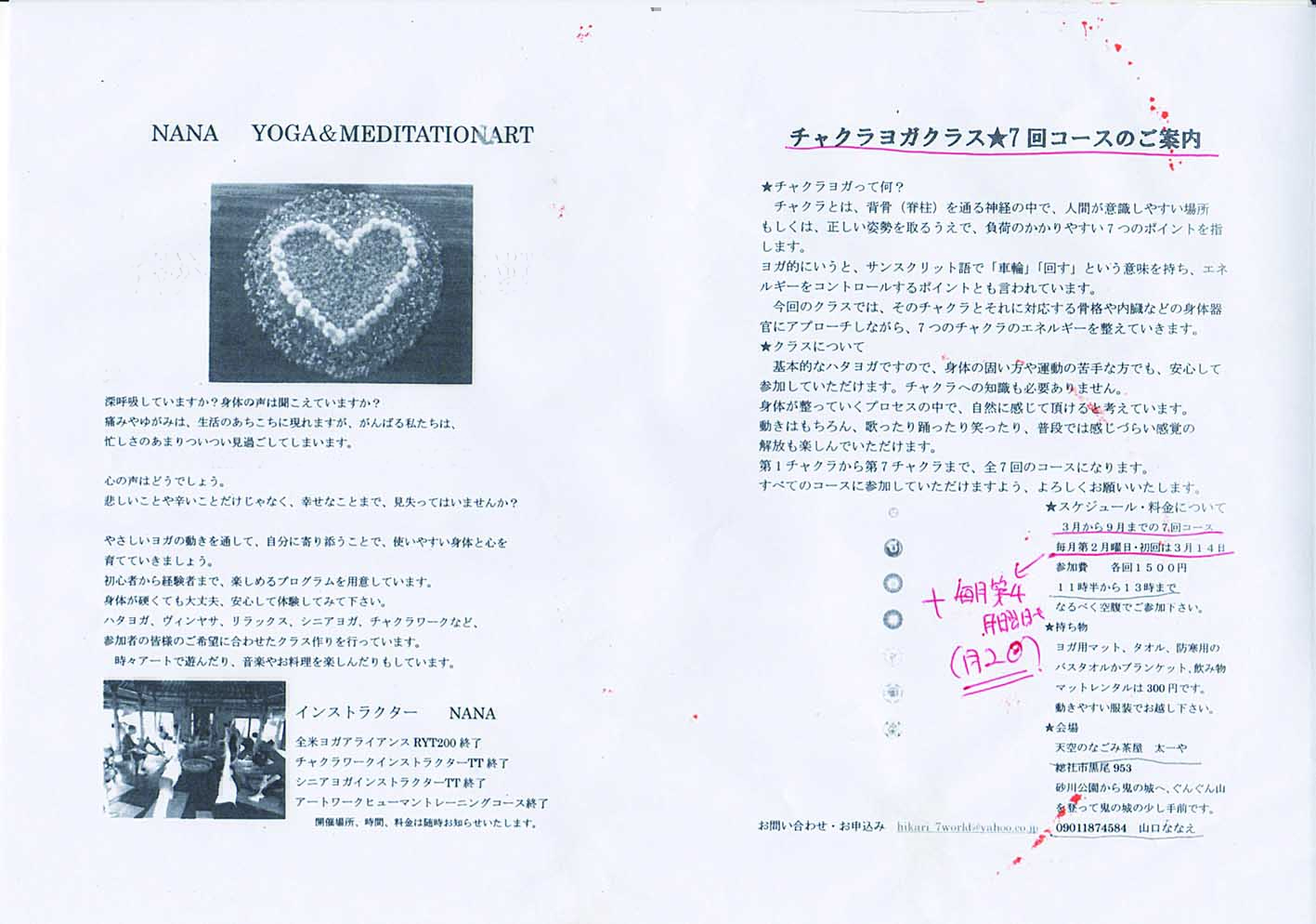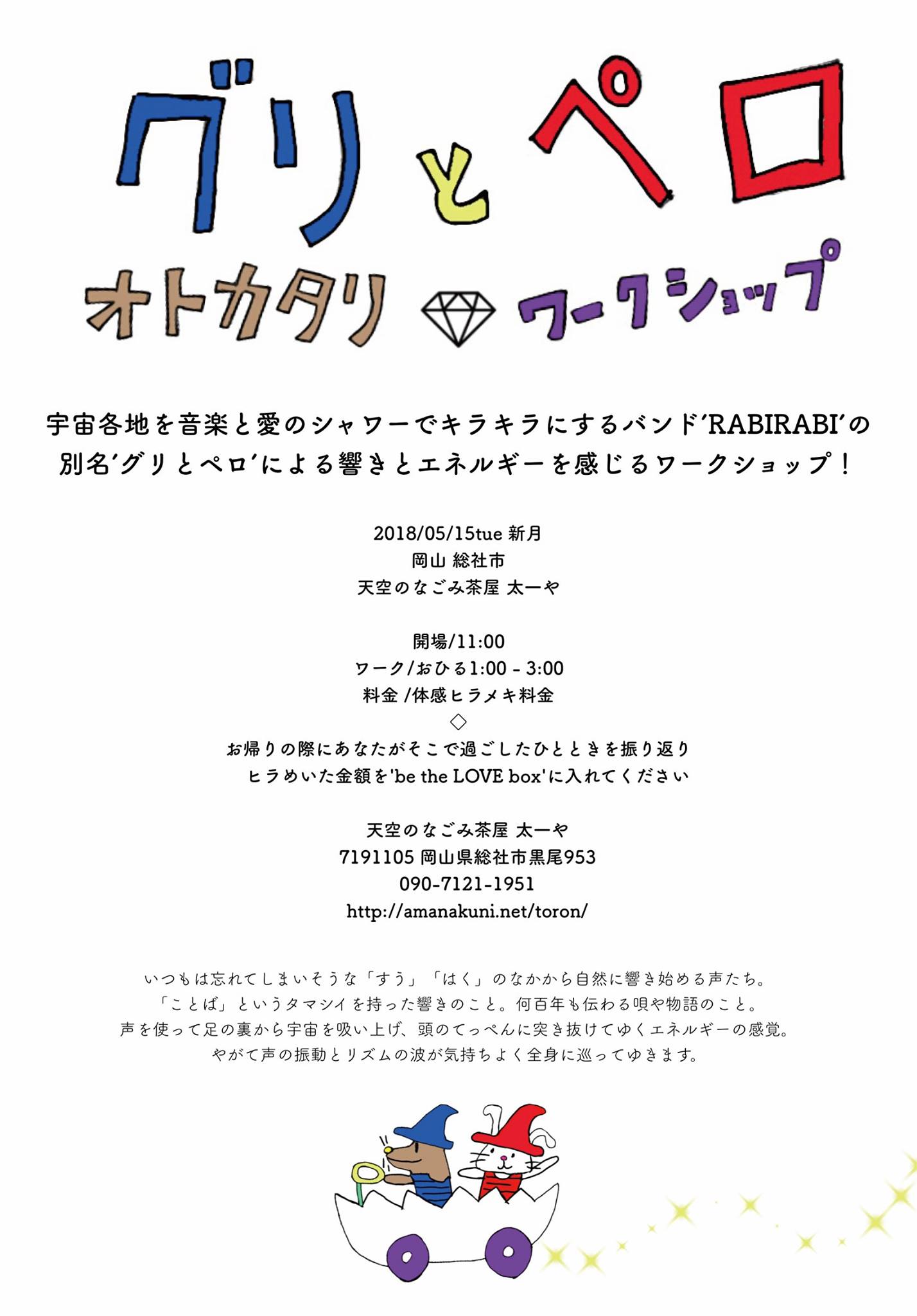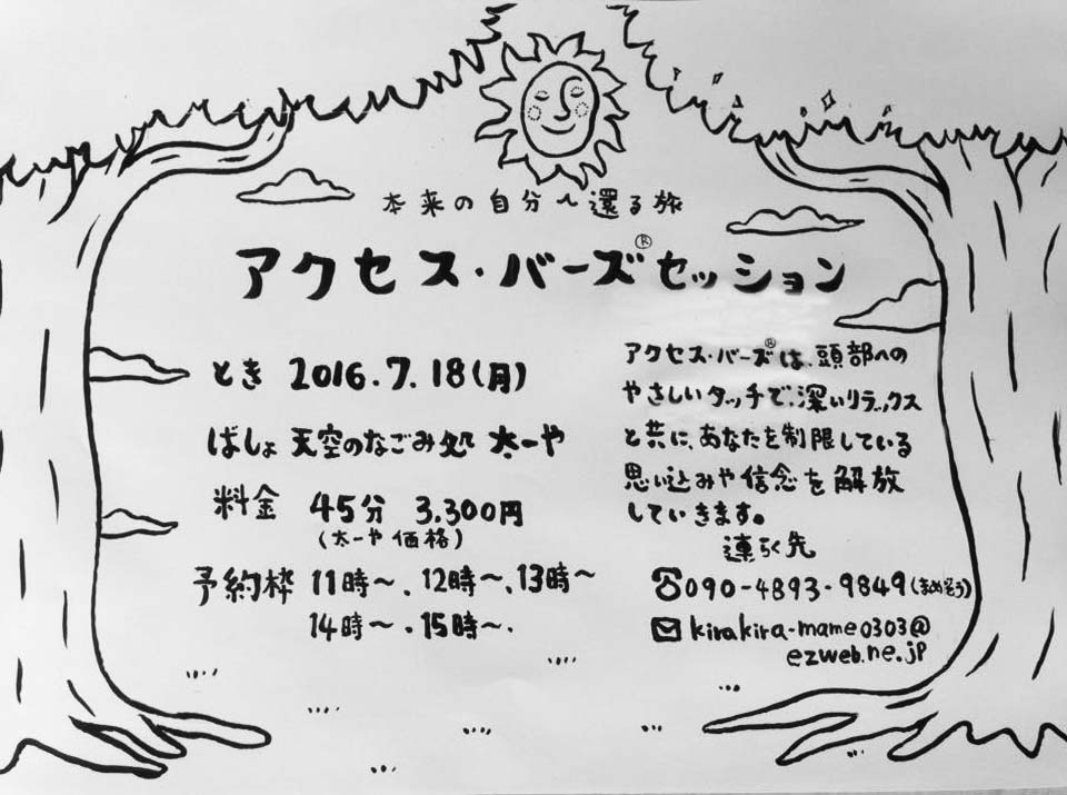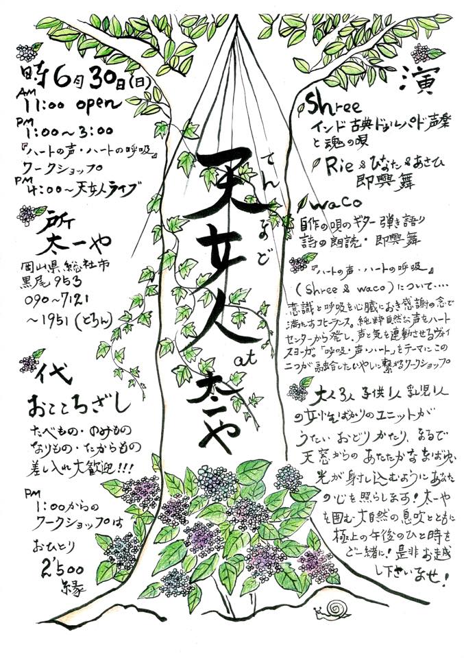 毎月第2日曜日 pm1〜1時間半 ¥2000