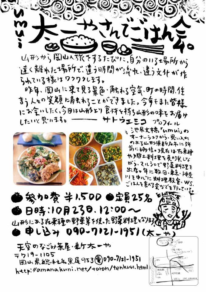 参加費 1300円(岩塩味噌汁 by とろん&おにぎり by はるか 付)