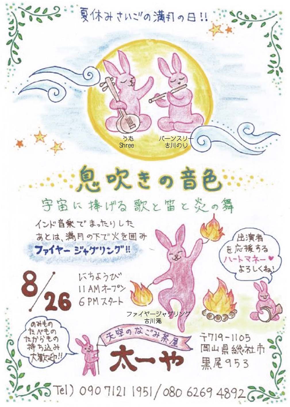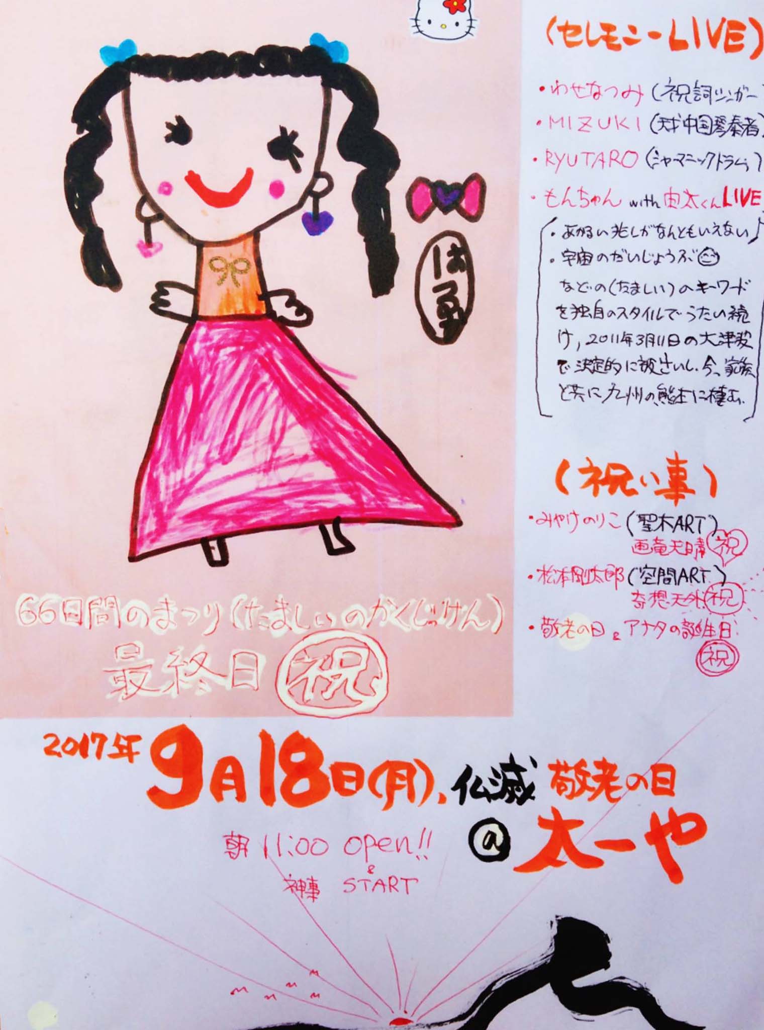 ★9/11スタートの日はam11に山王宮で火起こし、「食堂umui」のランチ。中学一年生の天才的な(みずき)の奉納演奏なども予定。