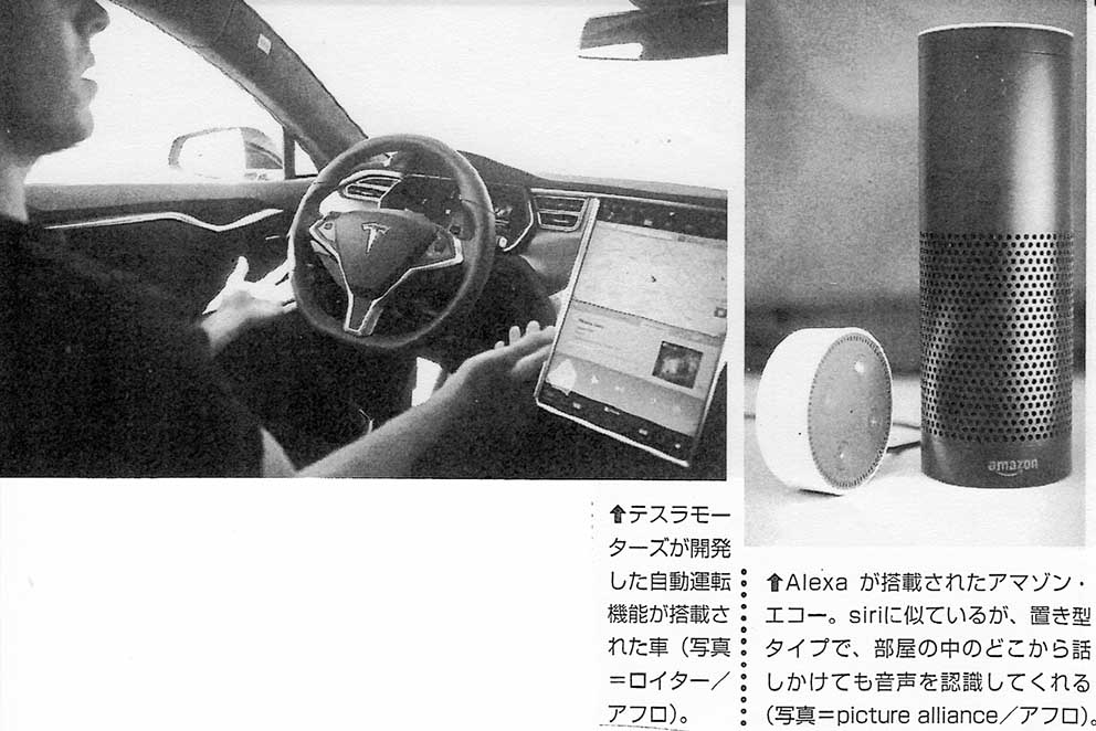今、シリコンバレーで最もホットなアイテムといわれているアマゾン・エコーという機械がある。アメリカのアマゾン・ドット・コムが販売するスピーカー型音声アシスタント端末で、アマゾンが手掛けたハードウェアの中で最大の成功となった商品だ。核となるのはAIテクノロジーだ。まだ英語版しか商品化されていないようだが、エコーが驚異的なのは、まず「耳の良さ」であると言われている。ユーザーの言葉を的確に理解し、まるで生身の人間と話しているような答え方をする。中核となるテクノロジーは、クラウドベースの人工知能“アレクサ(Alexa)”だ。様々なものをインターネットと連動させることをloTと言うが、アレクサ・テクノロジーで機械と人間の距離がさらに縮まった。