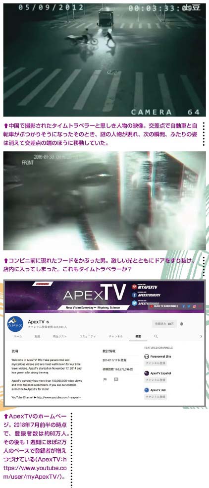 アメリカのApexTVという動画サイトが、最近、急成長している。その理由は、タイムトラベラーの動画にあるというのだ。元々この動画サイトは、エイリアン、UFO、ゴーストなどといった超常現象動画を多数、紹介していた。そして2016年4月からは、テレポーテーションの瞬間を思わせるような不思議な動画の情報が増えるという傾向はあった。中でもコンビニエンス・ストアのドアを通り抜ける男性の動画などは、非常に興味深い。このドア抜け動画の男性が、実はタイムトラベラーなのではないかと言われている。
