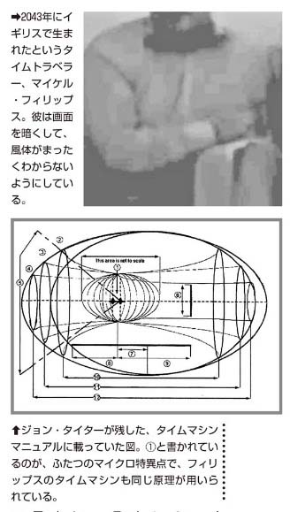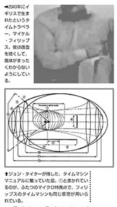2075年のある日のこと。政府のセクション18という部署から来たと名乗る人々が現れ、フィリップスはイギリス国防総省に連れていかれた。そこの格納庫で、8フィートほどの球状の物体を見せられ、タイムマシンだと説明されたというのだ。タイムマシンには、上下に二つのマイクロ特異点があり、それがマシンにパワーを与えている。これが重力を変形させ、時空の穴が作られるという。タイムトラベルでは、特異点のエネルギーが生み出す重力波を内側に向ける。逆に空間を移動する(瞬間移動する)時には、それを外側に向けて、その波に乗ればいいと、フィリップスは語る。すなわち、テレポーテーション(瞬間移動)とタイムトラベルは、ほとんど同じ原理の応用だったのだ。