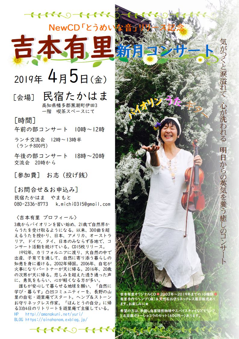 | 4月5日(金) | 高知 | 吉本有里新月コンサート