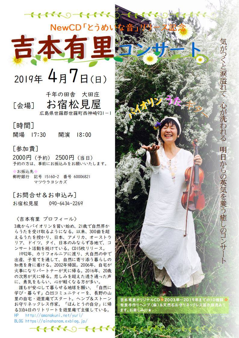 | 4月7日(日) | 広島 | 広島県世羅郡 吉本有里コンサート