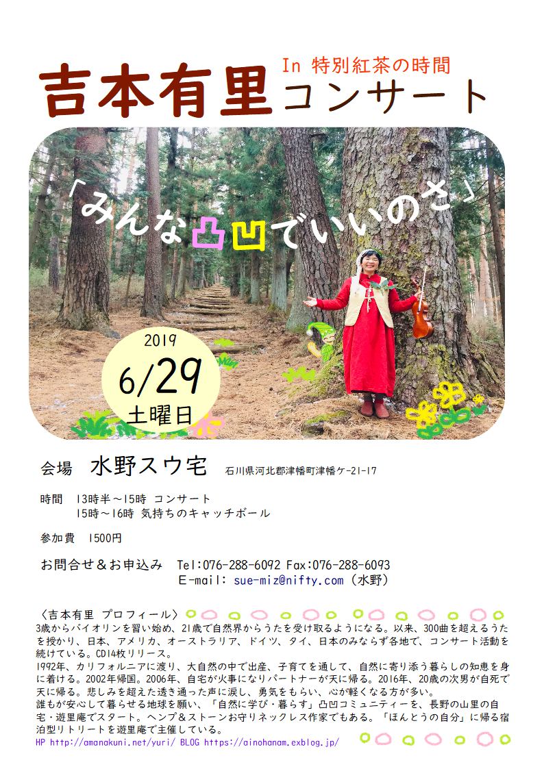 | 6月29日 (土) | 石川 | 吉本有里さんコンサートin特別紅茶の時間「みんな凸凹でいいのさ」