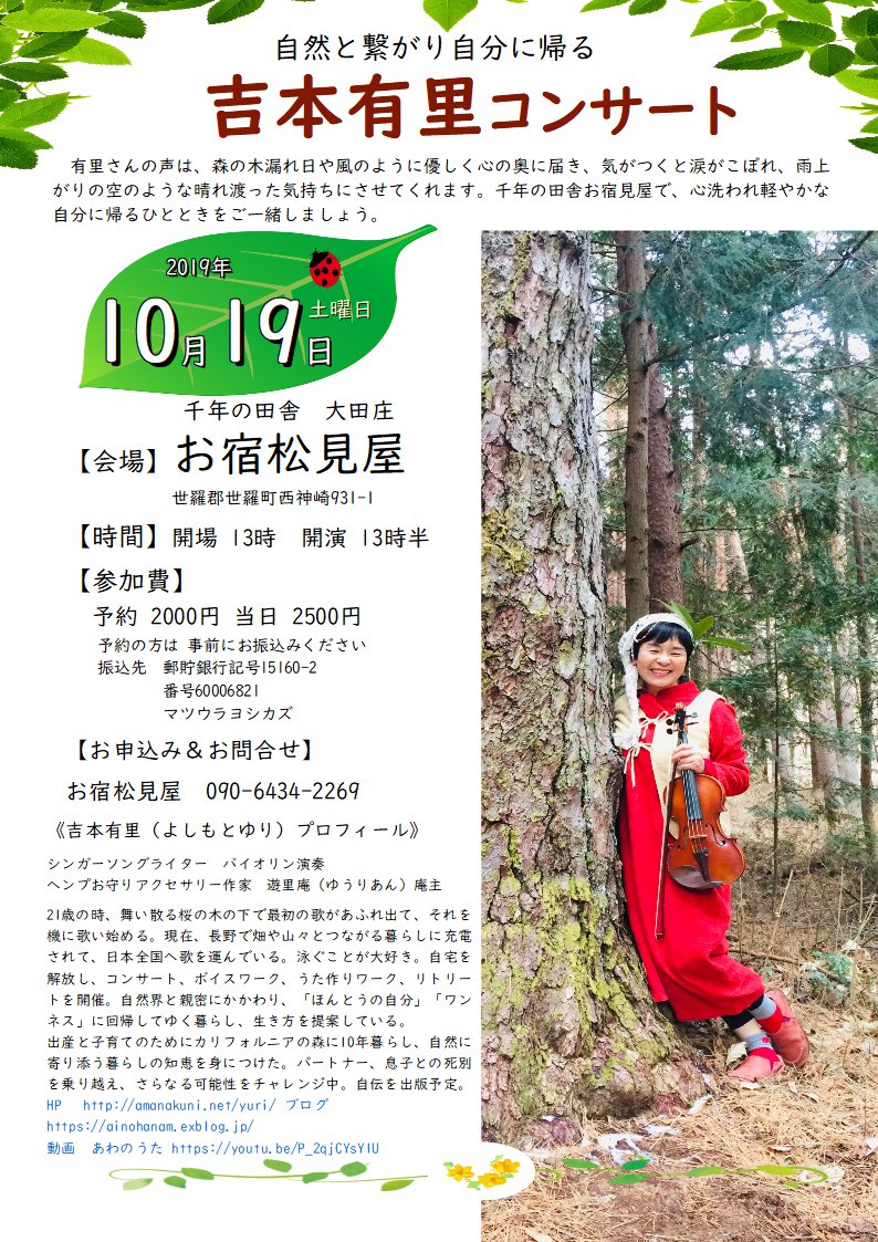 自然とつながり自分に帰る 吉本有里コンサート