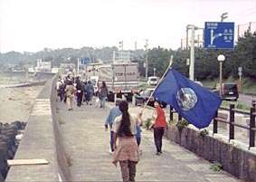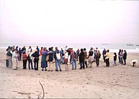 10.25、相良ビーチ。母なる大地、母なる海にてセレモニー。トムの言葉、みんなの心にひびく。地元の大勢の人々の参加、心強く、責任重し。足は軽やかに。 |