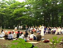 今年のテーマは「祈りのかたち」。踊りや富士山の信仰、日本という国について、聖なるお話、ジャンピング・マウス、アートなど、祈りのさまざまなかたちを集まった人たちでシェアし、最後に全員で大きなサークルを作り、祈りを捧げた。