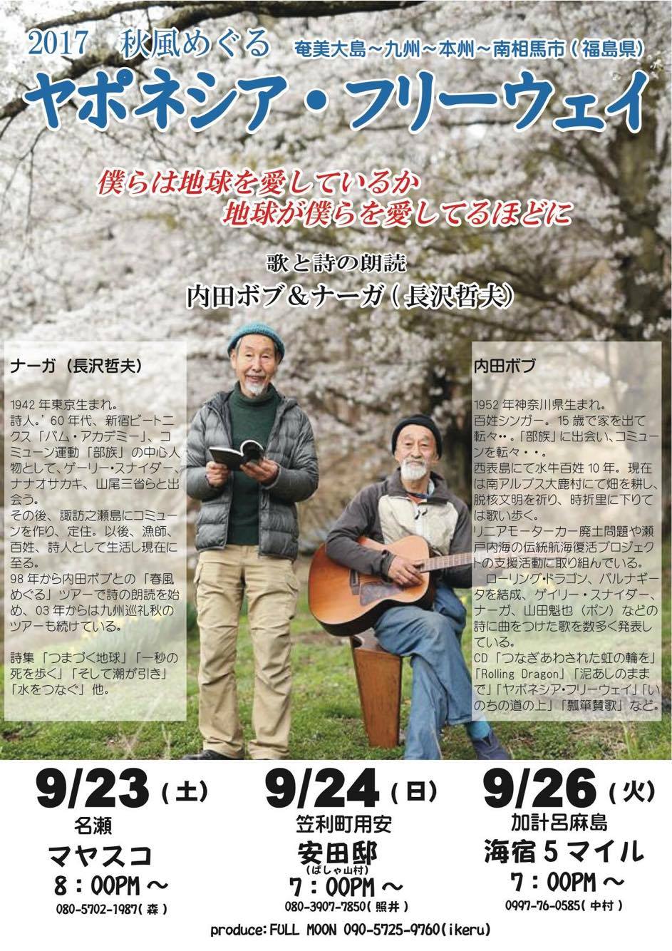 日付 開催地 会場、時間、値段、連絡先など/詳細ヤポネシア フリーウェイ 2017 秋風めぐるツアー 11月14日(火) 神奈川