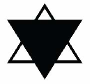 ☆影食愛命光の横のラインを底辺として、上下に描いた三角で△精神界と▼現象界とに分けて表裏一体の世界を現しています。