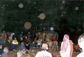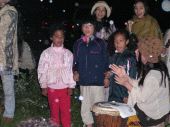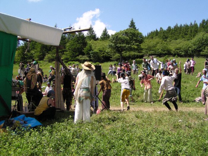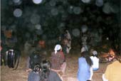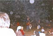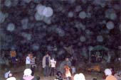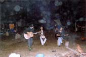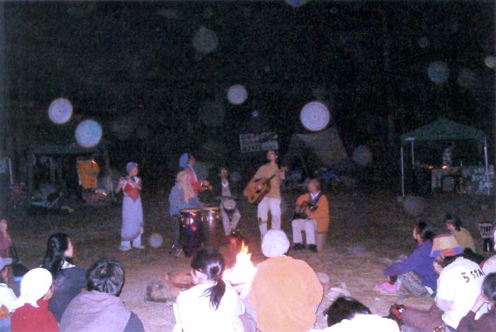 1日目(土曜)のノーマイクシアターの様子。たき火の灯りだけで電気なしの生演奏です。