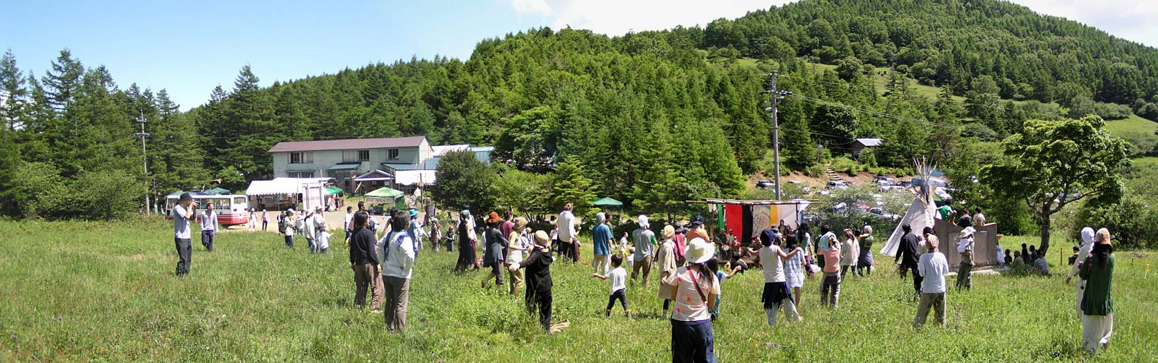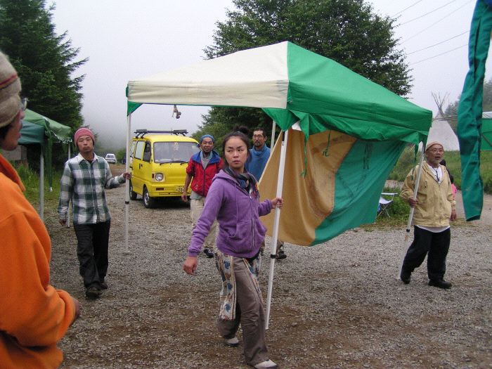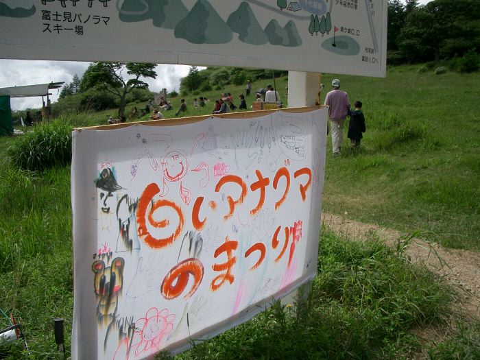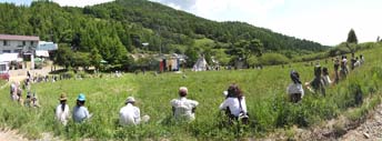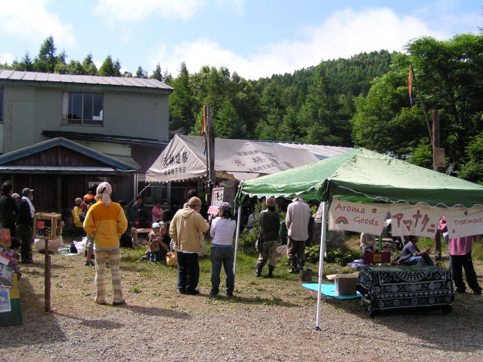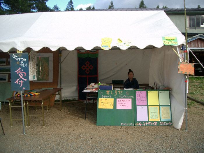 山道を30分ほどのぼって会場につきました。まだ人影はちらほら。でも途中の標識もわかりやすかったし、受付もちゃんとできてました。