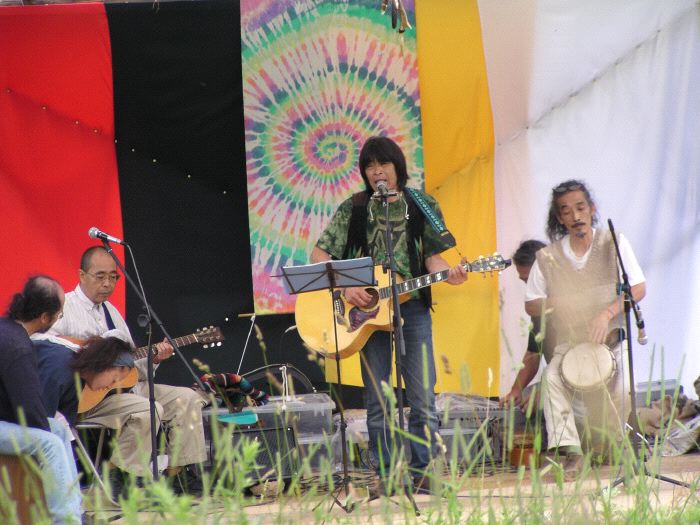 岩手からはるばる来た梶田イフのライブ。バックにはミュージシャン達が集まって即興のバンドです。