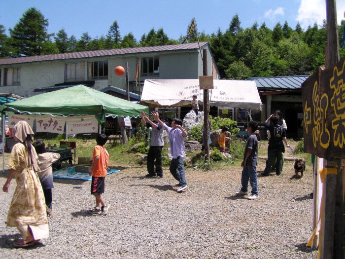 アマナクニのお店の横に作ったゴールでバスケをして遊ぶ子どもたち。おかげでしょっちゅうボールが飛び込んできて怖かった〜。