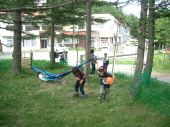 林の中に子どもたちの遊び場が作られていました。ハンモックが気持ちよさそう。
