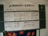 夜にたき火を囲んで開かれるノーマイクシアターはやりたい人がここに書き込んで予約します。