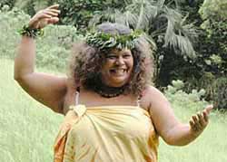 彼女は、由緒あるヘイアウ・キーパー(神殿の守り人)およびカフナの家系に生まれ、幼少時よりその資質を見いだされ、伝説的踊り手である祖母 イオラニ・ルアヒネの元でシャーマンとして特別な教育を受けて育ちました。現在もハワイ島の大自然の中、精霊たちと交流しながらネィティブに近い暮らしを続けています。