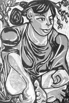生命の尊さと不可思議さを告げる松明。その後、静かな闇のなかに浮遊する蛍の光。夏の夜は、生命の炎に思いを馳せるに相応しい。そして己の内なる生命の火が、灯されるのだ。絵:金子亘「火の神」