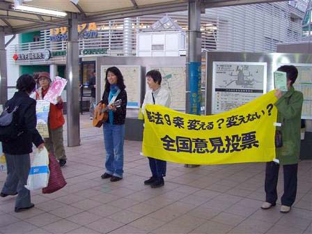 草の根で始まったこの赤いシールの意見投票,5月の3日の憲法記念日まで全国的にいろんな町で行われるらしい。