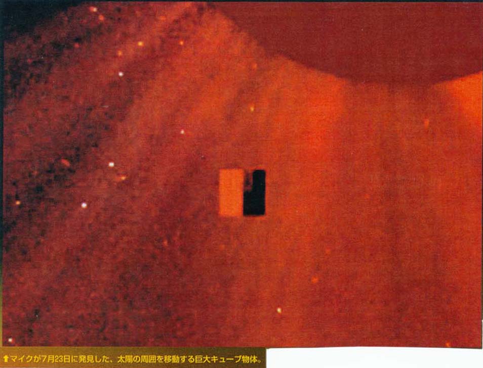 ここ1〜2年、太陽周辺に巨大UFOらしき物体が、頻繁に出現し、SOHOやSTEREOなどの観測衛星が捉えた多数の映像がある。2011年7月23日、マイクという「太陽UFOウォッチャー」が、SOHOの太陽画像に、衝撃的ともいえる1枚の画像を見つけた。それは四角い箱のような巨大キューブ物体だった。これは地球製の人工衛星の一部などではない。こういった巨大物体の出現も含め、2012年も半ばに入った現在、太陽、及び周辺で何かが起きているようだ。