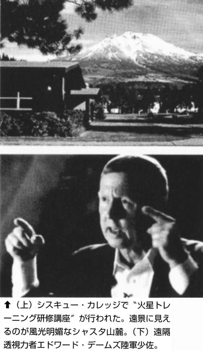 これは、火星環境の実状と対応の仕方を学ぶテレポート要員の訓練セミナーで、研修生はバシアゴを含めて10代半ばから19歳までの男女学生10人。講師は米陸軍の科学技術インテリジェンス(諜報)将校で、当時は軍事機密だった遠隔透視(リモート・ビューイング)研究のパイオニアとされるエドワード・デームズ少佐だった。