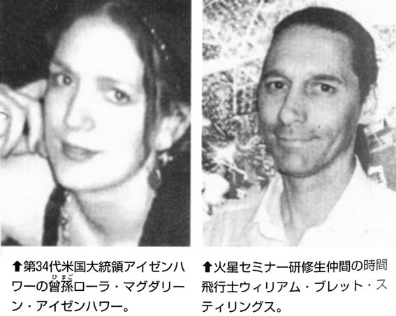 さらにもう一人、バシアゴやスティリングスとは無関係だが、2006年から翌年にかけて、CIA工作員らしき男から“火星秘密植民地”行き地球脱出計画に是非参加してほしいと、執拗に勧誘された女性がいる。ローラ・マグダーリン・アイゼンハワー。今年38歳。名前から分かるように、アイゼンハワー第34代合衆国大統領の曾孫に当たる。彼女はニューエイジ系の神秘主義芸術家で自然環境保護論者でもある。