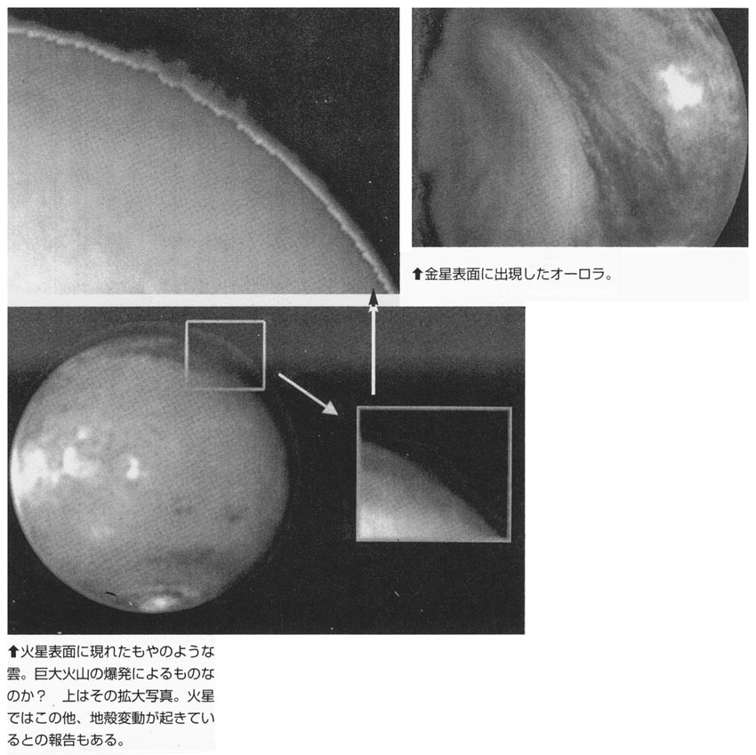 異常な活動を見せているのは、実は太陽だけではない。太陽の磁場異変は、太陽系全体にも大きな影響を与えている。各惑星においてもここ数年来、これまで観測されなかった異変が起きているのだ。たとえば金星。この惑星は本来、磁極を持たない。だが、その金星で、磁極がないと発生しないはずのオーロラが観測されている。なぜ金星にオーロラが現れるのか? 実は近年、金星には磁場こそないが、巨大な「磁気の領域」があることがESA(欧州宇宙機関)の観測で判明した。つまり金星のオーロラ発生の原因は、その磁気領域が突然、活発化したとしか考えられないのだ。