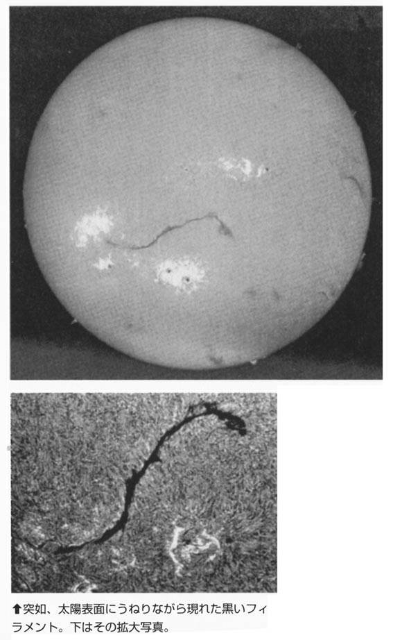 昨年のこの磁場反転後の8月、今度は太陽の表面に、まるで太陽を2つに分割するような巨大な黒いフィラメントが出現した。これは8月5日からの3日間の間に急速に発達し、長さ100万km近くまで達した。