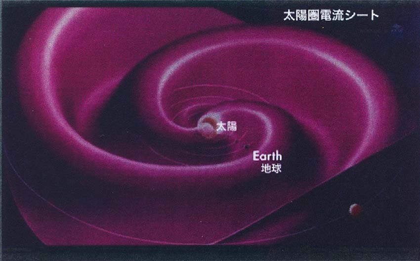 そこには1平方メートル0.0000000001アンペアの電流が流れている。弱い電流ではあるが、これが1万kmの厚さで、数十億kmという広大な範囲に広がっている。太陽圏は、この巨大なシートを中心に構成されている。