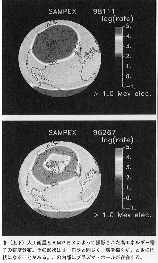 北極、南極のオーロラは、収束した地球の磁力線と宇宙からの高エネルギー粒子との交差のプラズマによって引き起こされた発光現象だが、オーロラが発生する、しないに関わらず、両極の上空には高いエネルギーのプラズマが存在する。肉眼では見えないプラズマは、レーダー観測した時、その姿を現す。人工衛星で両極で発生するオゾンホールを観測する機器で両極を特殊撮影すると、そこには高密度の磁力線が形成する「大穴」が映し出されることがある。大穴の正体はプラズマだ。磁力線に沿って見えないプラズマが集中しているのである。