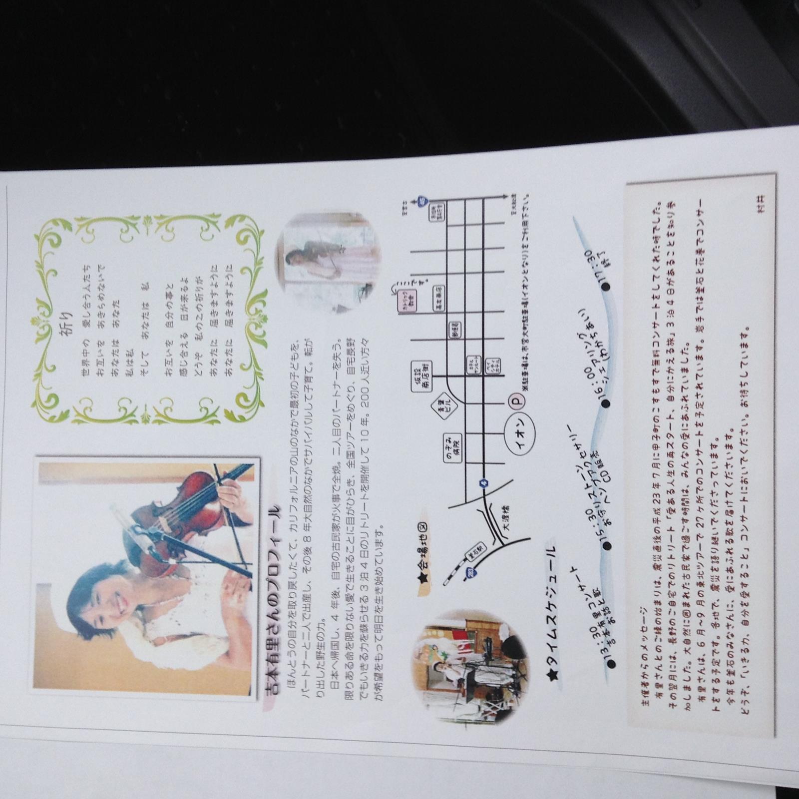 吉本有里コンサート 生きる力 会場 ハマユリックス 午後1時から 料金 1500円 お問合せ 090‐8411‐9509(川内) |