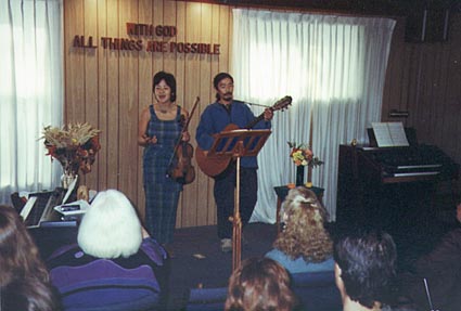 私は、結婚式に憧れたことはない。形式ばったことが苦手な性なのだ。でも、この日、“結婚式もいい”と思った。ジョアンとボブは、この日のために、充分、話し合い、理解を深め合ったにちがいない。年とった二人の母親が仲よく手をつなぎ、歌のお礼を言いに来てくれたのも忘れられない。二人の人生の新しい門出を祝福したい。