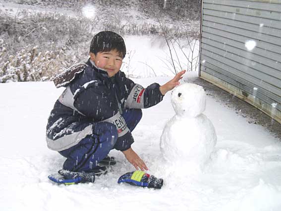 2004年12月29日 初雪で雪だるま 9歳になった八星